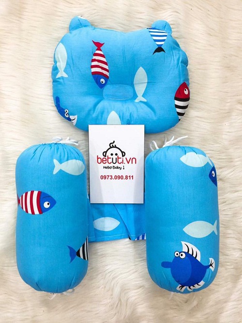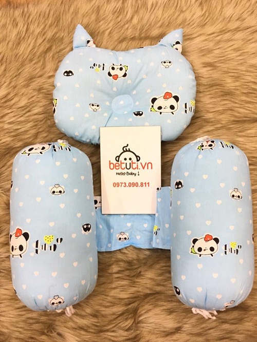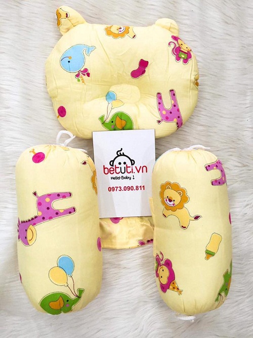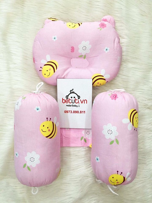 Gối đầu cho bé được làm bằng bông vô cùng mềm mại giúp định hình phần đầu cho bé.