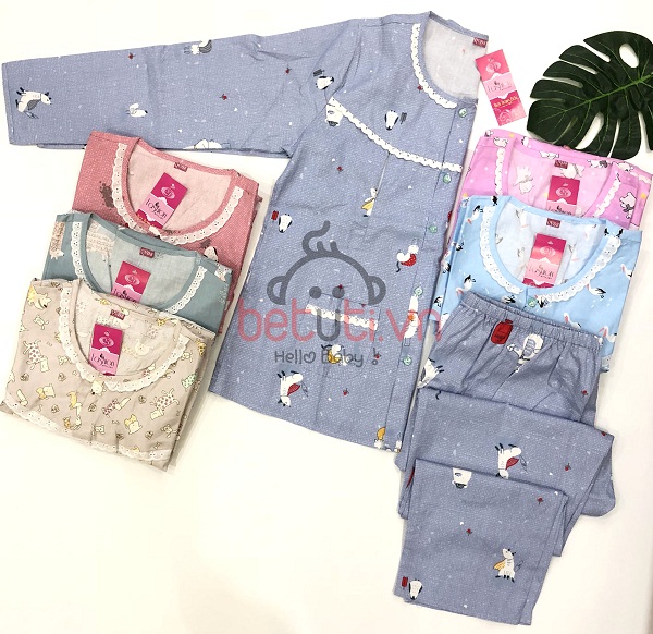 Set đồ gồm có 1 áo dài tay có hàng cúc bấm và 1 quần dài chun.