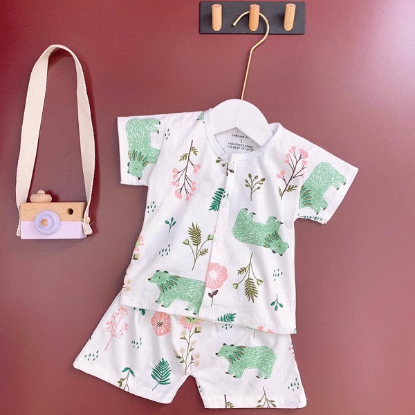 Sản phẩm có thiết kế gồm 1 áo cộc tay và 1 quần cạp chun. Chun rất mềm và thoải mái nên các mami đừng lo lắng sẽ để lại vết lằn trên da bé.