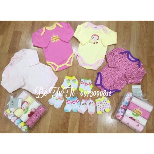 Một vài các sản phẩm quần áo bạn cần chọn mua: tã, quần sơ sinh, áo sư sinh, khăn quàng cổ, tất, áo liền quần,…