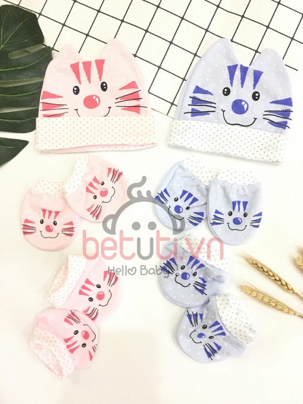 👉 1 Set mũ bao tay chân Thái. Trọn bộ đồ phụ kiện cho bé từ mũ đến bao tay chân cùng nhau nè, cực xinh để bé đi dạo với ba mẹ đó.