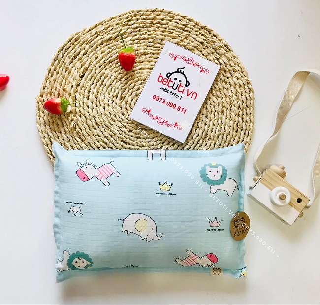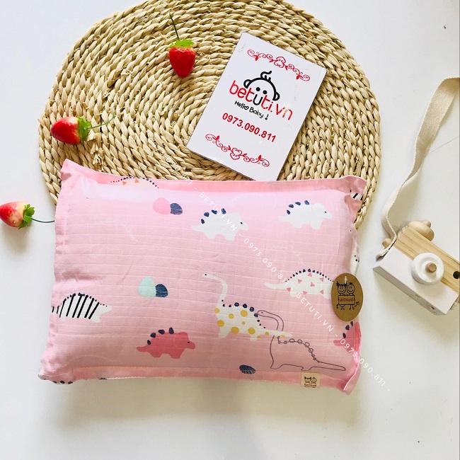 - Chất liệu: Vỏ gối làm bằng vải xô Hàn. Vải xô Hàn có kết cấu dệt mở nên rất thấm hút và thoáng. Nhờ đó bé không bị cảm lạnh hoặc mẩn ngứa cổ nếu khi ngủ ra mồ hôi trộm. Đặc biệt là nó có khả năng chống ngạt khi bá ngủ say. Lõi gối là 100% bông gòn cao cấp. Nó lún đều theo hình dáng của phần đầu nên đầu bé sẽ được bảo vệ tốt. Loại bông này càng giặt càng trở nên mềm mại, tơi bông chứ không xẹp lép theo thời gian.