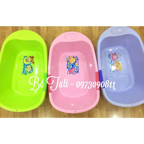 Ngoài việc sử dụng các loại thau chậu tắm thì bồn tắm cũng là dụng cụ tắm cho bé rất tiện dụng được các mẹ ưa chuộng. Bởi bồn tắm cho bé có thiết kế dạng bồn dài để bé có thể nằm trọn chiều dài tiện cho việc tắm rửa. Chất liệu thường được dùng để sản xuất là nhựa an toàn với trẻ em.