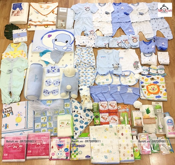 Toàn cảnh trọn gói đồ sơ sinh xuân hè cho bé trai (Gói vip)
