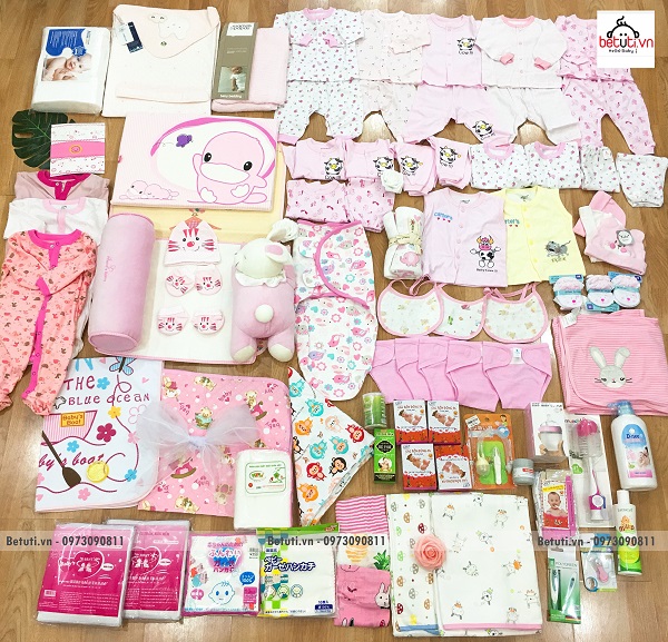 Toàn cảnh trọn gói đồ sơ sinh xuân hè cho bé gái (Gói vip)