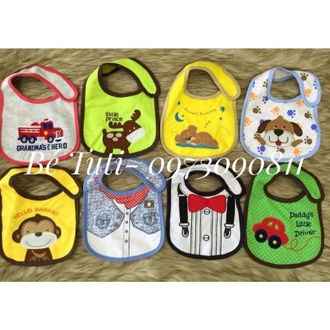 Thiết kế dán lệch, có lớp nilong ở giữa giúp bé ăn không bị bẩn áo, dùng làm yếm dãi cũng rất ok